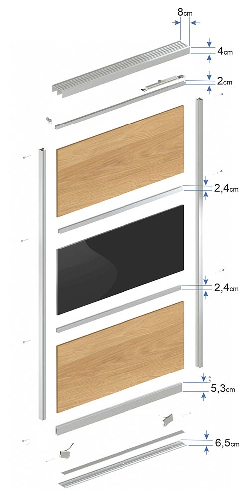 Όλα τα προφίλ διατίθενται για την κατασκευή συρόμενης ντοuλάπας με 2-3 ή 4 φύλλα. Παραδίδονται κομμένα στις διαστάσεις που μας δίνετε (Εξωτερικές διαστάσεις κουτιών χωρίς προεξοχές).